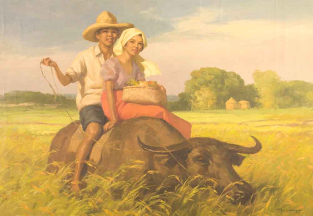 Fernando Amorsolo, born on May 30, 1892, was the First National Artist of the Philippines and renowned as the Master Painter of the Philippine Sunlight. He earned his degree in painting with honors at the University of the Philippines Manila and was sent to Spain by Don Enrique Zobel to further his studies where he was able to learn from the works of European masters Corolla and Velasquez. While known for his masterpieces such as ‘Defensa de Honor’ and the countless portraits of prominent figures in society, he is most famous for his works depicting the idyllic provincial life. “Man and Woman on Carabao” is yet another beautiful rendition of the peaceful life of Filipinos set against a picturesque landscape.
