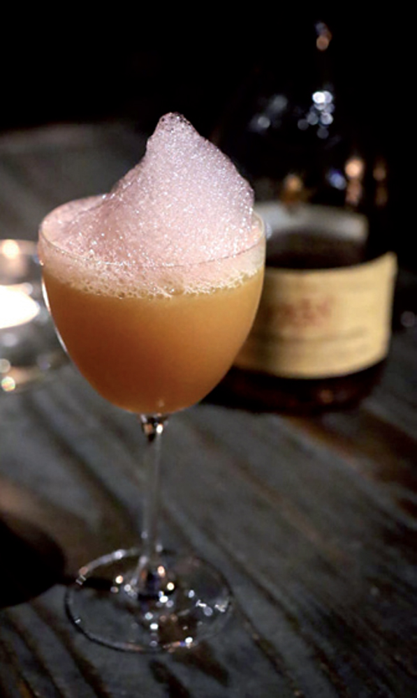 The Side Kick is a sweet and oaky mix made especially for the younger generation. It is crafted by mixing 45ml of Rémy Martin 1738 Accord Royal, 20ml Cointreau, 30ml sweetened mango juice, 15ml lemon, and topped with Chamomile Tea foam and then shaken. This is best served in Nick and Nora glassware.