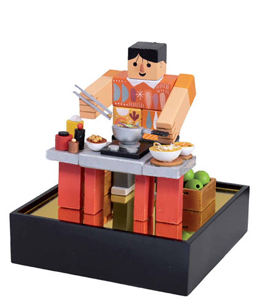 To top off the luscious exhibit, Tejido introduces the second series of his “Toys of the Avant-garde” — a collection of geometric-abstract wooden dolls representing the grassroots of Filipino-Chinese family businesses. Coining the series title “Family Legacies”, each doll is carefully constructed — hand-built and painted to remind the present and future Filipino-Chinese generations of their hardworking ancestors. These ancestors established modest yet integral industries such as selling fruits, silk, and hardware. And with enough luck, hard work, and determination, these ancestors led future generations to their dignity, wealth, and prosperity.