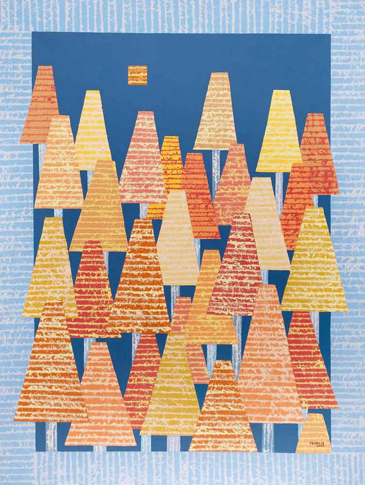 For his latest exhibition, visual artist Francis Evangelista interprets his ruminations on nature and man and how its relationship transcends perceptual understanding. Illustrating his abstracted renditions of forestry through almost primal permutations through various shapes, forms, and color, Evangelista’s work is a reminder to recalibrate our understanding of the world we inhabit, for it is not merely just a backdrop against which life unfolds, but a vibrant and sentient entity where realities converge.