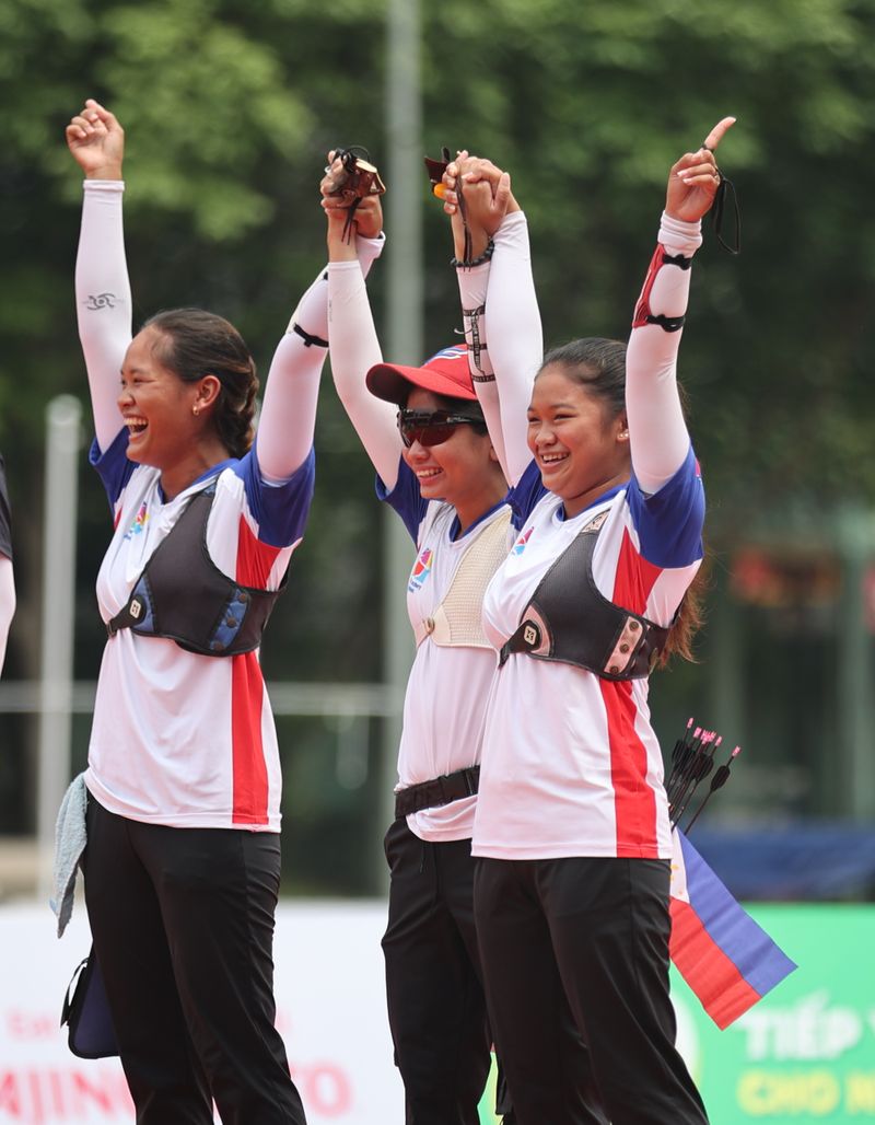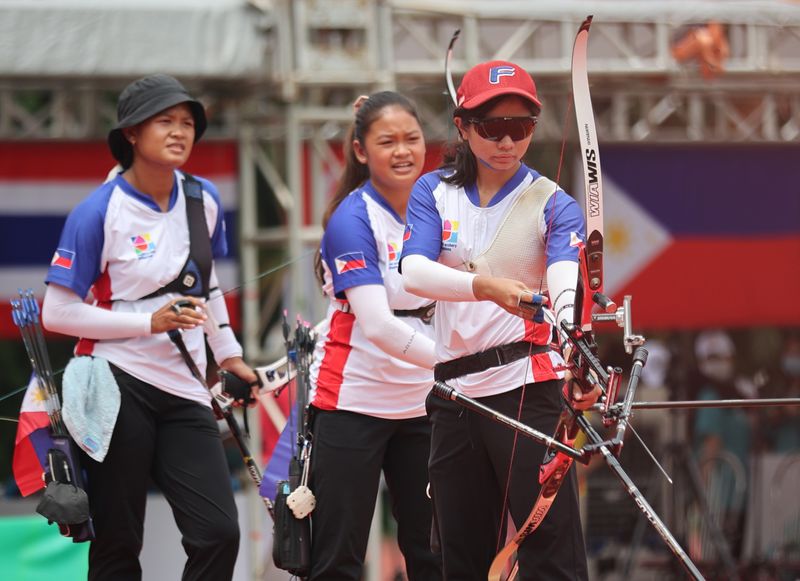 Philippine team bullseyes gold in women’s archery ___ May 19, 2022 Winning archers (left to right) Phoebe Nicole Amistoso with Pia Elizabeth Angela Bidaure, and Gabrielle Monica “Abby†Bidaure beam after clinching gold in the Archery Women’s Team Recurve competition. Share FacebookTwitterPinterestWhatsApp Amistoso readying to take aim Previous article832 cops, soldiers to be deployed in special polls in Lanao del SurNext articlePhilippine Sibol Wild Rift team wins in women’s esports ___ Share post: FacebookTwitterPinterestWhatsApp