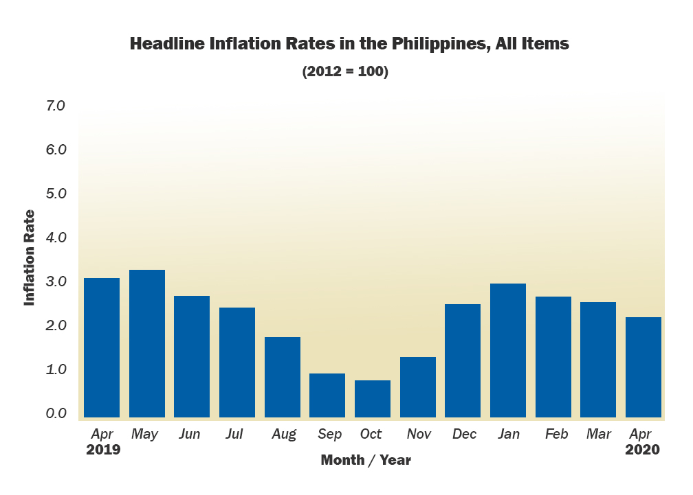 “The BSP Department of Economic Research projects April 2020 inflation to fall within the 1.9 to 2.7 percent range,” Diokno said.