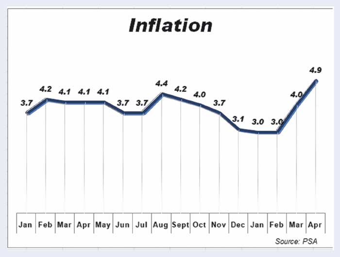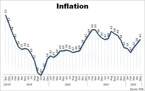 Last month, inflation was at 4.9 percent. In May of last year, when the country was still under the strictest quarantine level to fight off the COVID-19, inflation was at 4.1 percent.