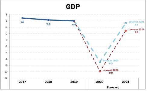 However, under a “lower case,” or a scenario of deeper contraction followed by a sluggish recovery, the World Bank report showed the Philippine economy could post a decline of 9.9 percent this year, followed by a weak growth of 2.9 percent in 2021.