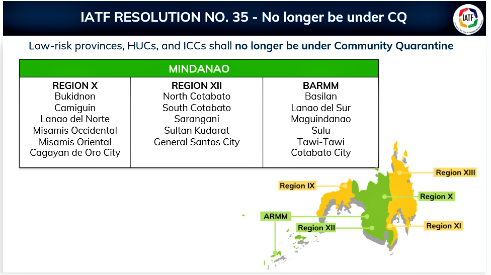 The announcement was made by presidential spokesman Harry Roque on Tuesday after the President approved Resolution 35 issued by the Inter-Agency Task Force on the Management of Emerging Infectious Diseases (IATF-EID).